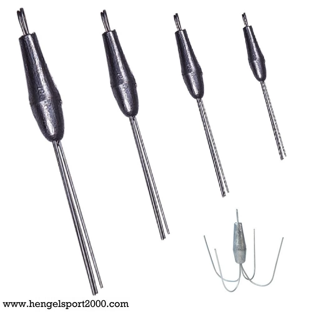 Ankerlood in torpedo vorm. Door de ankers aan het lood blijft het lood mooi stil liggen op de bodem, zelfs in stroming. De ankers zijn makkelijk te buigen.