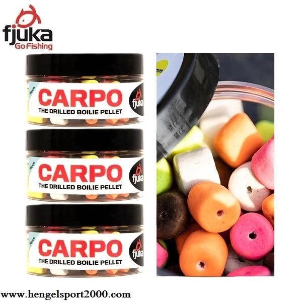 Nieuw van Fjuka “Carpo voor geboorde boilie Pellets”. Deze pellet is bestand tegen de aandacht van kleine vissen, trekt grote vissen aan.