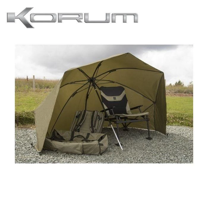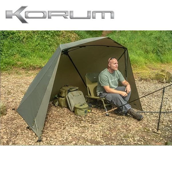 Korum 50 inch Graphite Brolly Shelter, deze brolly in traditionele stijl heeft een frame uit grafiet als basis en beschikt over zijflappen voor extra bescherming. Deze sterke, lichtgewicht brolly is voorzien van 210D nylon doek waarvan de naden geheel getapet zijn en waarbij alle potentieel zwakke punten extra versterkt zijn. Eigenschappen 125 cm frame, Zijflappen voor extra bescherming, Extra sterk frame uit grafiet, 210D Oxford nylon doek met getapete naden, Versterkt op diverse punten om slijtage te voorkomen.