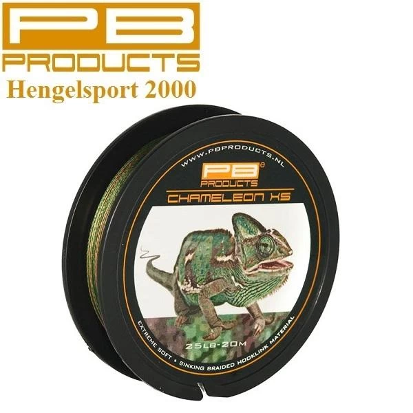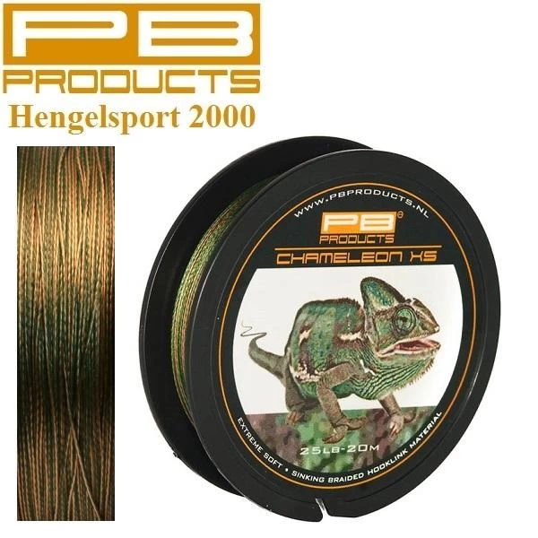 PB Products Chameleon XS is verkrijgbaar op een spoel van 20 meter in 15 lb en 25 lb. Deze fluweel zachte en soepele braid doet zijn naam eer aan omdat hij door zijn typische kleursamenstelling onder water nauwelijks opvalt tegen verschillend gekleurde bodemstructuren. Chameleon leent zich uitstekend voor het maken van basis onderlijnen in elke lengte en kan met vrijwel ieder haaktype worden gecombineerd. Dit knoop vaste en zeer langzaam zinkende materiaal – dat zeer natuurlijk overkomt – plooit makkelijk rond de bek van de karper en staat een goede aas opname nooit in de weg. Het volgt zonder problemen de contouren van verschillende bodemstructuren. Chameleon is zo licht in gewicht dat het op bijvoorbeeld wier blijft liggen. Als je met dit materiaal moet werpen, adviseren wij om een PVA wokkel op de haakpunt te prikken om eventueel in de war raken van de onderlijn te voorkomen.