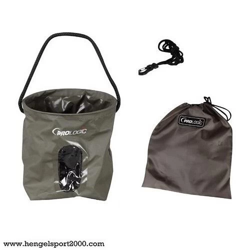 Deze emmer is opvouwbaar en waterdicht, handig als je een karper die op een onthaakmat ligt nat wilt maken.