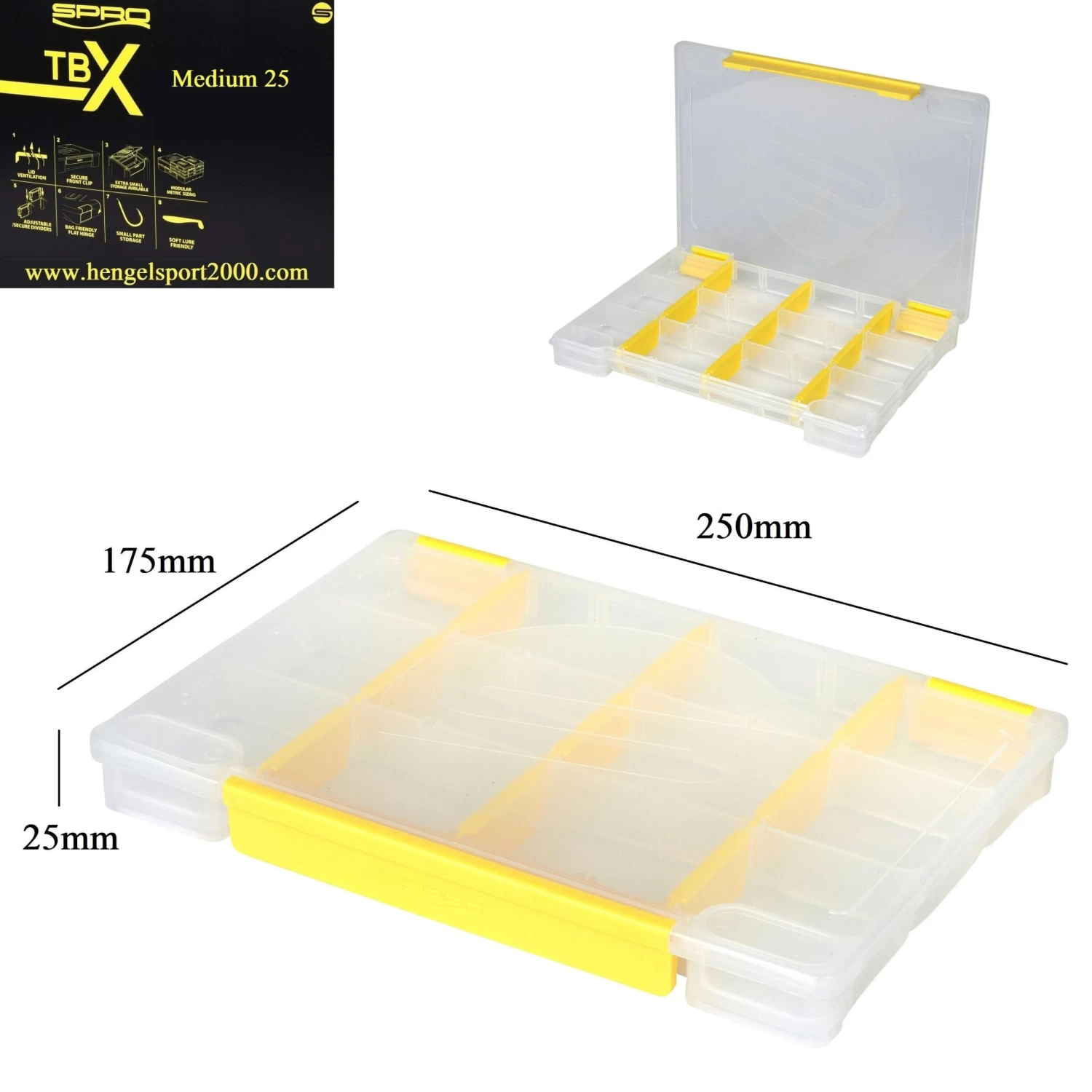 TBX boxen zijn door SPRO volledig ontworpen voor het vissen met kunstaas. De dozen zijn allemaal gemaakt met metrische buitenafmetingen in een modulair maatpatroon, waardoor ze op een uniforme manier kunnen worden gestapeld en in een tackle bag kunnen worden geplaatst. TBX dozen zijn ontworpen met een volledig uniek plat scharniersysteem, wat betekent dat elke kant van de doos plat is. Dit is een geweldige functie omdat het veel gemakkelijker is om de dozen in tackle bags te plaatsen. Elke doos heeft een enkele brede clip aan de voorzijde die met één hand kan worden gebruikt. Een ander uniek aspect van TBX-boxen zijn de secties voor kleine onderdelen. Waar bij normale tackle boxes de randen verspilde ruimte zijn, hebben onze ontwerpers van de gelegenheid gebruikgemaakt om de ruimte te benutten door ondiepe compartimenten toe te voegen voor allerhande kleinmateriaal. Er is zelfs een los verkrijgbare TBX-Tray beschikbaar die compatibel is met de meeste dozen